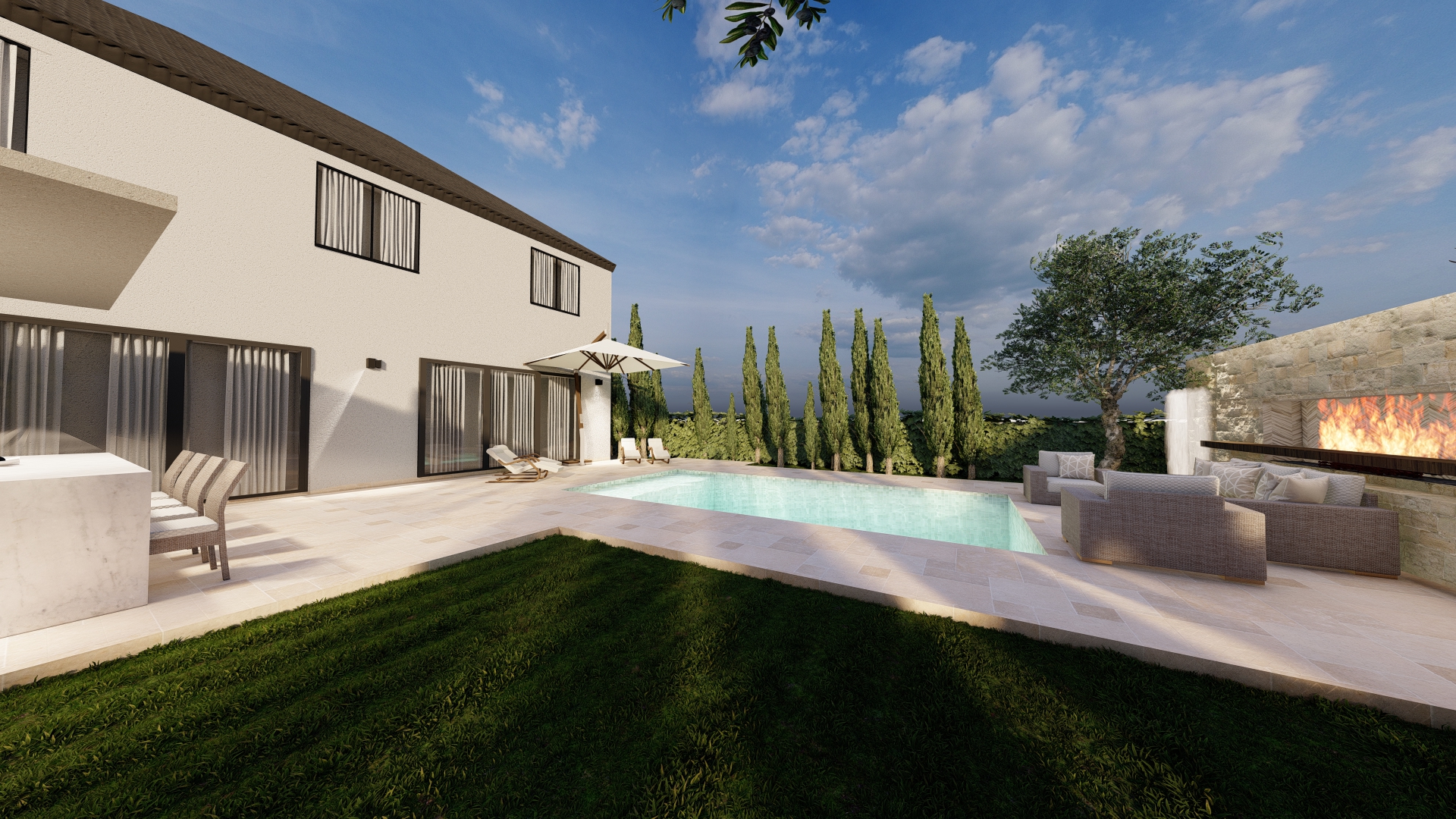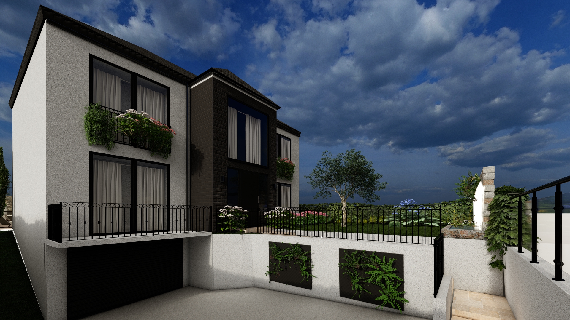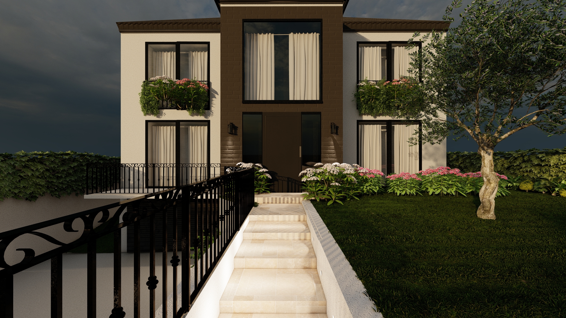 Le projet s'inscrit sur une parcelle de 659 m² située à Étiolles. Il s'agit d'une modification ponctuelle du projet initial, visant à affiner son intégration dans le site et à harmoniser les choix esthétiques. Le traitement paysager a été repensé autour de trois axes : la simplification des matériaux en façade, le remplacement du portail pour un rendu plus sobre, et la redéfinition de l'allée d'accès, dont le nouveau dessin intègre un jeu d'escaliers plus fluide et mieux adapté à la topographie du terrain.