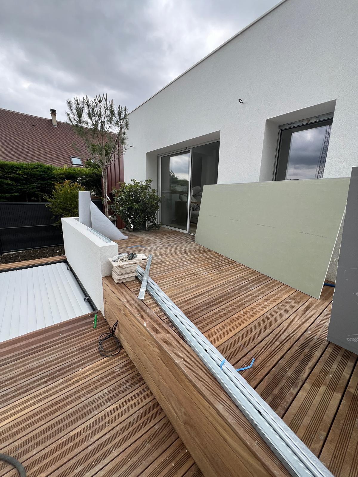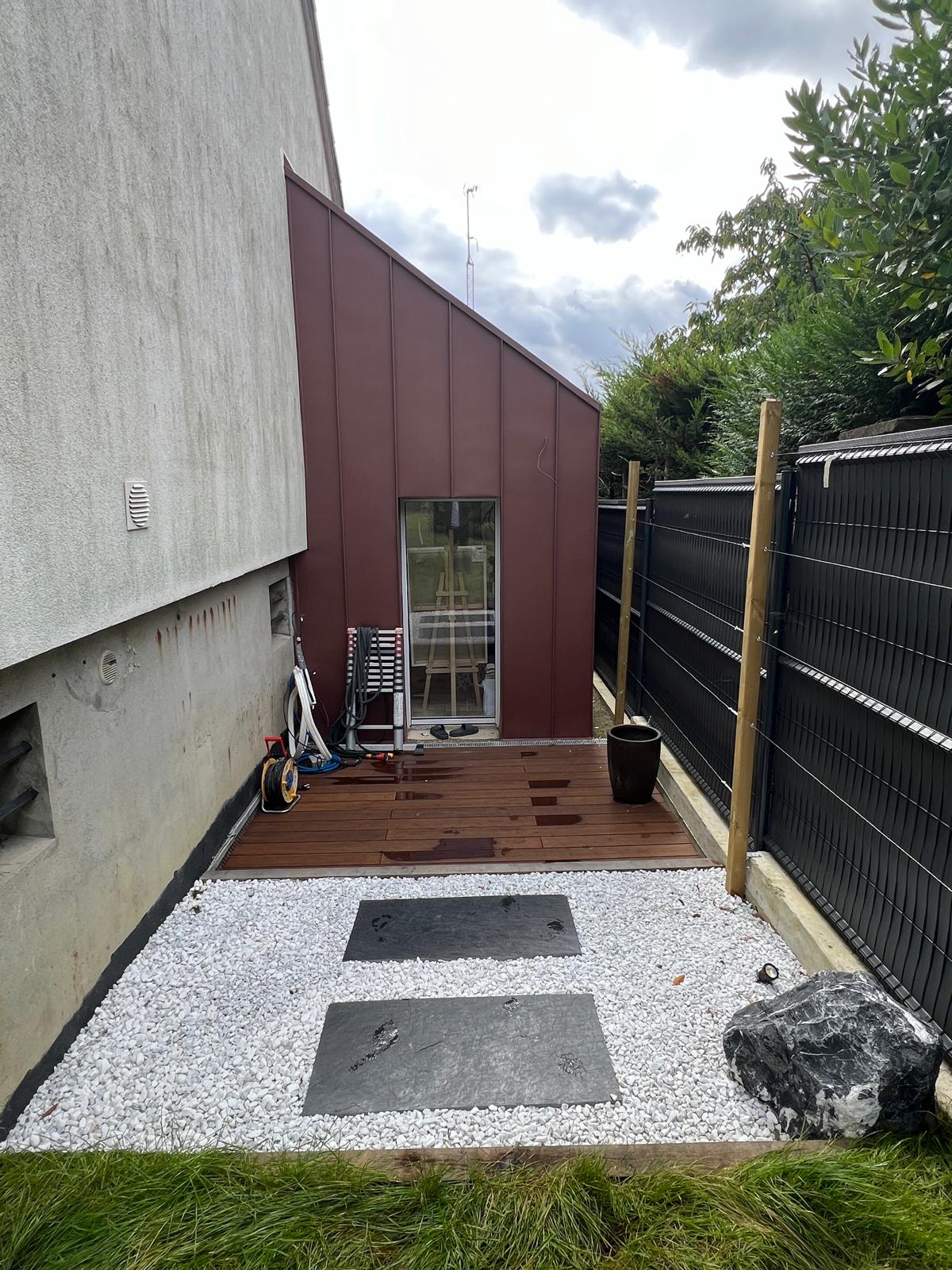 Situé à Yerres, le projet prévoit l'extension d'une maison individuelle, ainsi que l'aménagement d'une terrasse en bois et l'installation d'une piscine semi-enterrée. L'extension, pensée dans la continuité de l'existant, s'implante en limite séparative tout en préservant l'intimité des voisins. Le projet veille à maintenir une faible emprise au sol et à valoriser les espaces extérieurs, avec 88 % de surface perméable, favorisant l'infiltration naturelle des eaux pluviales et une intégration paysagère douce