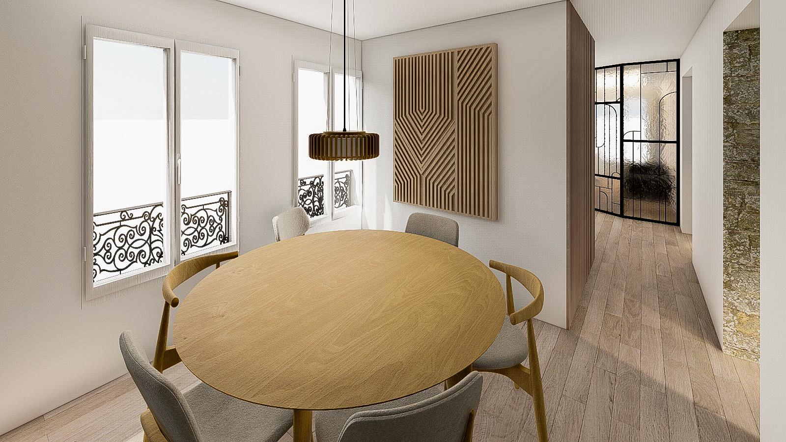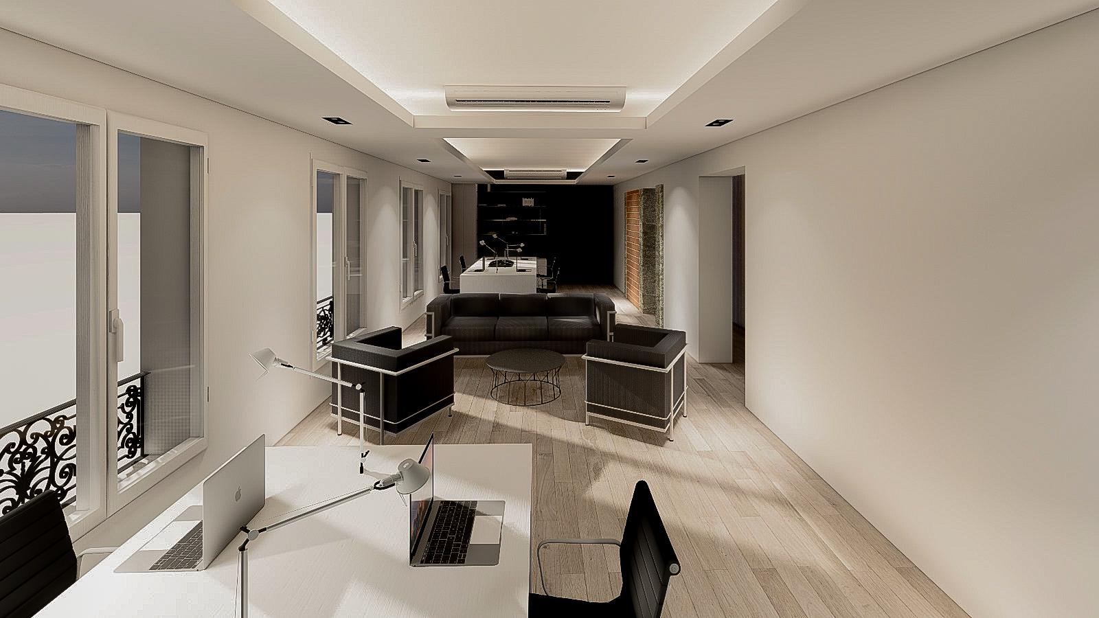 La rénovation du bureau Propulsa clarifie l'organisation spatiale en articulant visibilité et confidentialité. Le bureau de direction, situé à l'entrée, bénéficie d'une verrière qui lui apporte structure et lumière. Les espaces partagés (cuisine et salle de réunion) sont relégués à l'arrière, préservant leur intimité. Le sanitaire est agrandi, doublé et discrètement intégré grâce à une porte invisible. L'open space est repensé pour accueillir de nouveaux postes de travail et un espace de repos, accompagnant l'évolution du collectif.